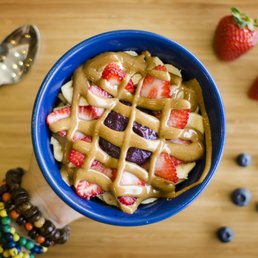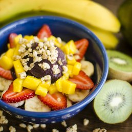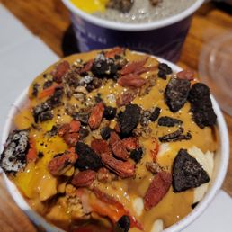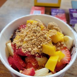 Great Açaí spot! I got the California style bowl, and used apple juice as the juice mix in. I really think it really elevates the bowl. The açaí base is delicious and sweet, and not too thick in consistency. I've gone to some places where the açaí is too thick and frozen to the point where you can't taste the flavor, but thats definitely not the case here. I love the consistency of their açaí. Unfortunately, they forgot the honey on my fruit but other than that, everything else was good. I chose cacao nibs as my additional topping. I received great and quick service, and am always in and out of the shop within ten minutes or less! Perfect for a hot day